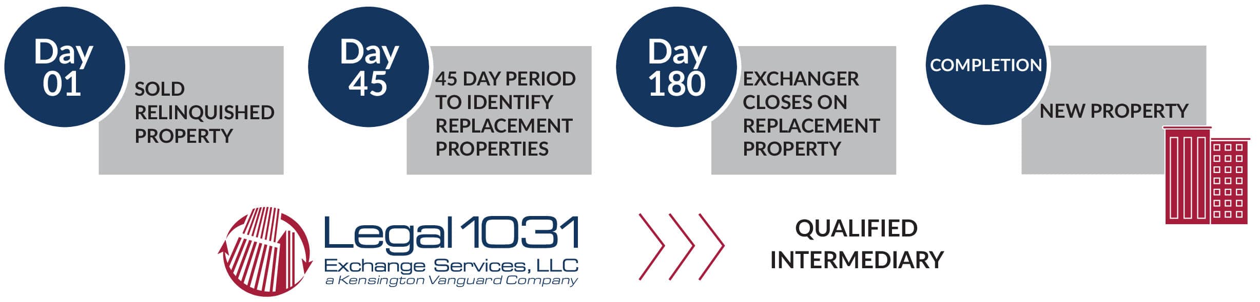 Legal 1031 Exchange Services, LLC does not provide tax or legal advice, nor can we make any representations or warranties regarding the tax consequences of your exchange transaction. Property owners must consult their tax and/or legal advisors for this information. Our role is limited to serving as qualified intermediary to facilitate your exchange.